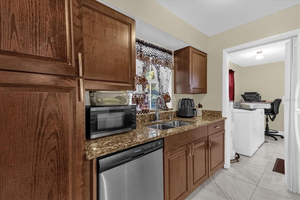 LOCATION, LOCATION, LOCATION!!!!!!Welcome home! This home is a steal in the established community of Kingswood Manor. Sited on 1/4-acre lot on a cul-de-sac, this block home is ready for you to make it YOURS. One of the bathrooms features updated LUXURY CERAMIC TILES and the primary Ensuite bathroom. The home offers a large indoor laundry room with AN OFFICE DEN, luxury ceramic titles and covered, screen enclosed patio just off the dining room. A single car carport WITH DRIVEWAY ABLE TO PARK 3 CARS AT A TIME; has both access to the covered front entry and an exterior door leading to the laundry room and kitchen. NEW ROOF (2025); NEW KITCHEN WITH GRANITE COUNTERTOP AND PANTRY (2023), NEW DISWASHER (2023), NEW STOVE (2026); NEW LUXURRY CERAMIC TILES THROUGHOUT THE MAIN AREAS AND GUEST BATHROOM (2025); WATER PROOF LUXURY VINYL PLANK FLOORING IN ALL BEDROOMS; 3 REMOTE CONTROLLED CEILING FANS WITH LIGHTING; UPDATED ELECTRICAL PANEL; FULLY PAINTED EXTERIOR (2023) AND INTERIOR( 2025). RE-PIPED in 2008, HVAC 2017, water heater 2013, refrigerator 2017, range 2017. KINGSWOOD MANOR has a community pool, baseball field, basketball and tennis courts, playground, picnic areas, dock and lake access. Close to I-4, grocery including Whole Foods and Trader Joe's, Nordstrom Rack, Winter Park Village, Enzian Movie Theater and more! JUST MOVED IN!!!!