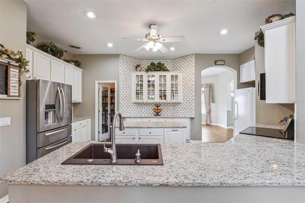 • Interior Features: Built-in Features, Cathedral Ceiling(s), Ceiling Fan(s), Crown Molding, High Ceilings, Kitchen/Family Room Combo, Open Floorplan, Primary Bedroom Main Floor, Solid Surface Counters, Split Bedroom, Vaulted Ceiling(s), Walk-In Closet(s)