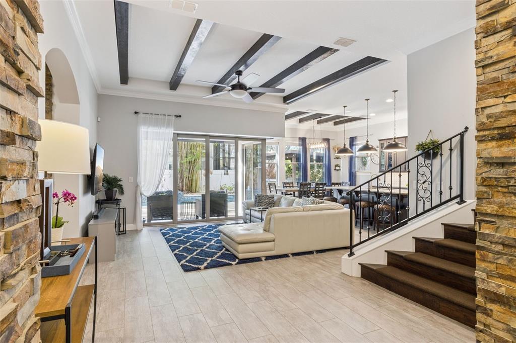 Situated on a corner lot the SANIBEL model home aka âThe Castleâ that won the Excel Award for THE BEST MODEL IN FLORIDA. It is a 4BR/ 4.5 Ba/ 3-car garage. This beauty comes with large entertainment areas inside and out. On the 1st floor youâll find : Wine Cellar, Jr. Ownerâs Suite, Flex/Office & a Guest Bath. Magnificent Chefâs kitchen, at the heart of the house, and features 42â cabinetry with second-tier upper lighted hutch stack for oven space. The cabinet-front door to the pantry eloquently blends with the cabinetry of the entire kitchen. 2nd Floor, the Ownerâs Suite master bedroom w/balcony access. Also on this level is a large gathering room, 2 more bedrooms w/en-suite baths & large laundry room. Stunning Oasis backyard with a resort style salt-water pool & spa with a summer kitchen under a covered pergola. Built in surround sound In and outside. Just a few minutes from Plant St. Winter Garden Downtown, Winter Garden Village Shopping, Disney World, and toll road access to Downtown Orlando. This is a true Ownerâs retreat.