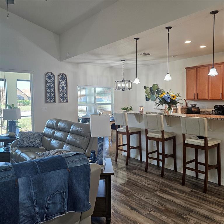 Are you looking for a move-in ready home? Well, you found it! This home is like a new build, only better. It is clean as a whistle, has tasteful lighting and fans, luxury plank vinyl, granite countertops, screened lanai, retractable screens on the garage, epoxy garage floor, pad for a grill outback, only naming a few. This is an open floor plan that is great for either entertaining or hanging out at home by yourselves. The home was built in 2020 so it was designed to be eco friendly which makes it easier on the pocketbook. The master has an ensuite bath and a large walk in closet. The two additional bedrooms are a comfortable size for guests. One of the rooms has 3 windows that bow out which allows in lots of natural light, not to mention the bit of extra floor space it adds. It is a perfect space for a desk should you choose to make this your office. All this plus the fact that it is in one of Florida's premier Active Adult Communities. There are two 24 hr manned entrances, 2 pools & hot tubs, billiard rooms, craft rooms, computer libraries, bowling alley, movie theater, 3 dog parks, golf course, pro shop, dances, entertainment and too many clubs and activities to mention. You can be as active or involved as you like. Live and mingle among folks you may have a lot in common with and many of the same interests.