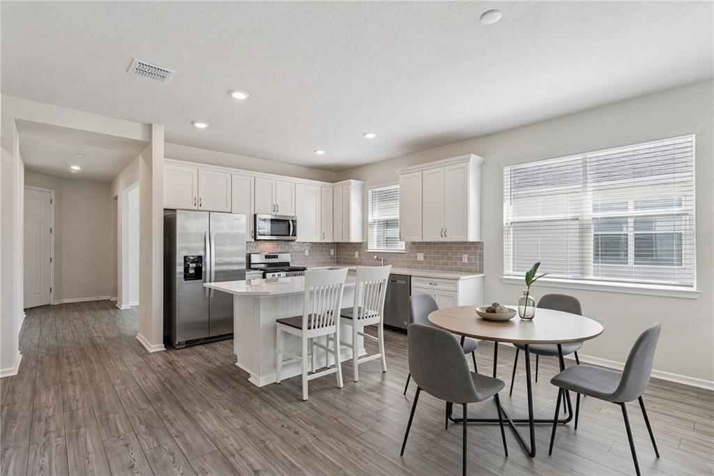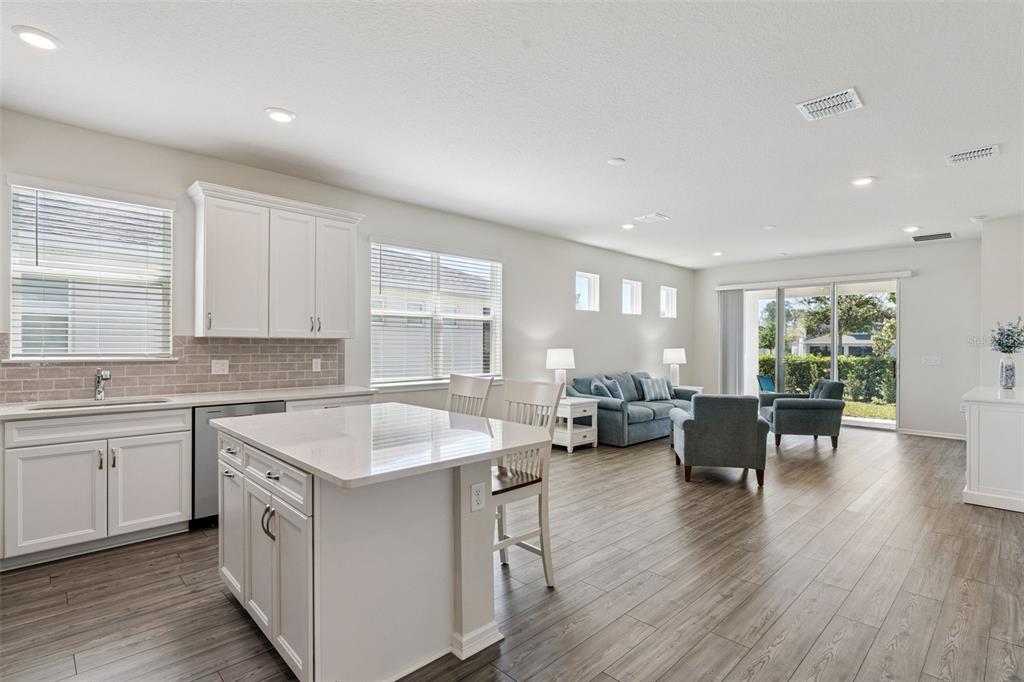 NEWER VILLA on PREMIUM LOT with BEST UPGRADES! This 2 Bedroom, 2 Full Bath Plus FLEX ROOM and 2 Car Garage Villa is just a few steps from the Oasis Amenity Center and backs up to a COMMUNITY PARK! All this just 2 Miles to DISNEY and NO CDD! Great Features Include: NO Carpet! All LUXURY Plank Vinyl and Ceramic Tile! GOURMET KITCHEN with Shaker Cabinets with Crown Molding, Soft-Close Drawers and Pull-Out Shelves! Center ISLAND is great place to Gather! Quartz Countertops, Deep SINGLE BASIN Sink, Subway Tile Backsplash and SS Appliances including GAS Stove and Refrigerator with In Door ICE and WATER make this a Dream Kitchen! OPEN CONCEPT Floor Plan â so the Kitchen Overlooks the Casual Dining Area and Family Room with Triple Sliders out to the Covered Patio. Patio has a GAS stub for future Summer Kitchen! Enjoy a VIEW that will get more beautiful as the Landscaping Matures! Plus â NO HOMES BEHIND YOU means more PRIVACY! Ownerâs Suite has Double Door Entry and Opens to LUXURY BATH with Upgraded Tile, SEAMLESS Glass Shower Enclosure with BENCH, DOUBLE Sinks and LARGE Walk-In Closet! FLEX Room is at front of home â would make a great OFFICE, Den or THIRD BEDROOM. Bedroom 2 is near FULL Bath 2. Spacious Laundry Room INCLUDES Front Load Washer and Dryer. This ENERGY EFFICIENT HOME with Lo-E Double Pane Windows, R-30 Insulation and Rinnai TANKLESS WATER HEATER will save you $$. Other Upgrades: GUTTERS, Security System, Pest-Control System, Smart Home features and Pocket Doors! Del Webb OASIS is the Premier 55+ Lifestyle Community! Close to DISNEY and Great Amenities include Guard Gated Entry, Gorgeous 12,000 Sq Ft Clubhouse with Cafe, Fitness Center & Movement Studio, Demo Kitchen, Craft Room and Coffee Lounge. Outside there is the RESORT-STYLE Zero Entry Pool and Spa, Sports Courts, Event Lawn, Fire Pits and Lots of SPECIAL EVENTS coordinated by Oasis Lifestyle Director! HOA Includes Yard Maintenance, Cable & Internet, and Exterior Maintenance. Still covered by BULDER WARRANTY! All this close to Shopping, Restaurants, DISNEY and the 429! Note: Landscaping affected by recent freezing temperatures will be replaced or credit given at closing. Waiting on Estimate.