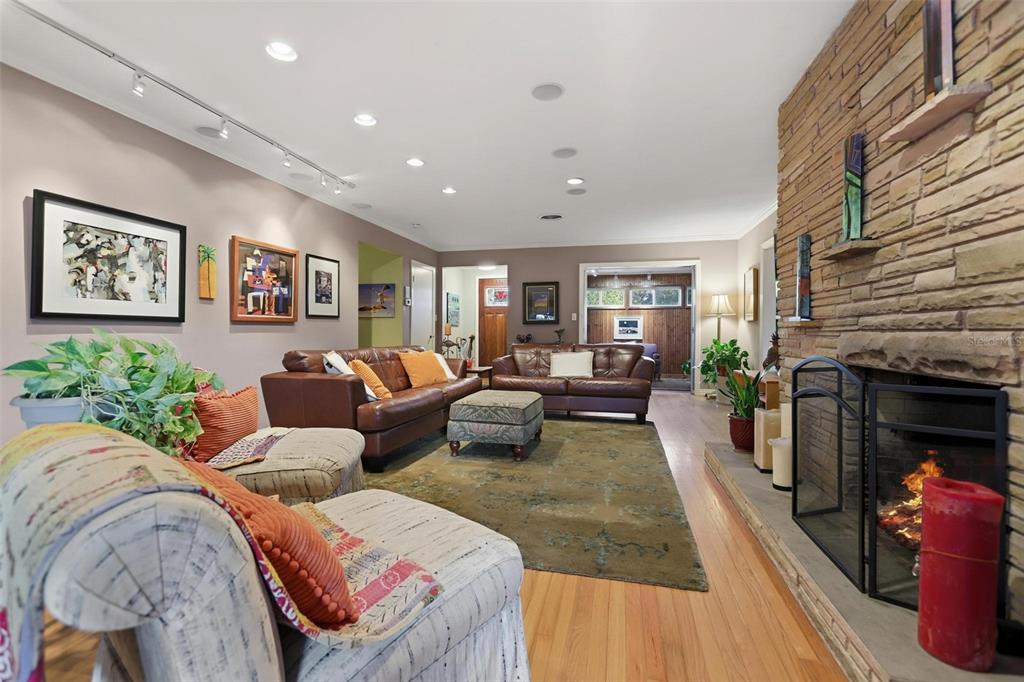 The living room is anchored by a cozy gas fireplace, while gas heat and a gas water heater add efficiency and peace of mind. The flexible floor plan offers two spacious primary bedrooms, a third bedroom, and a separate officeâperfect for guests, multigenerational living, or working from home. Entertaining is a breeze in the eclectic dining room featuring a double built-in desk/buffet that adds both charm and practicality.