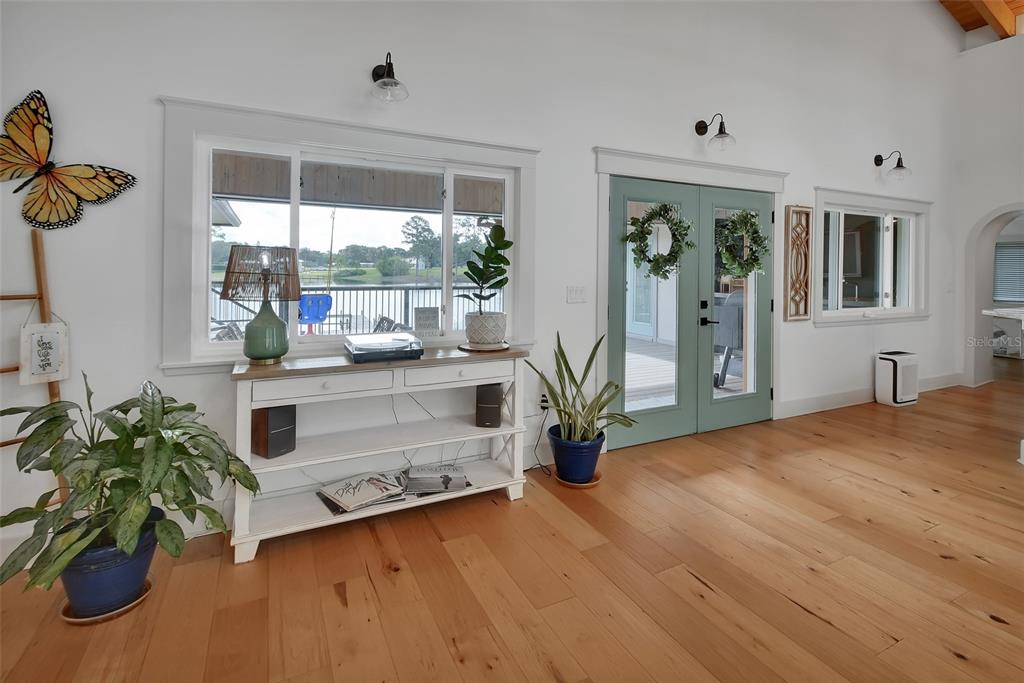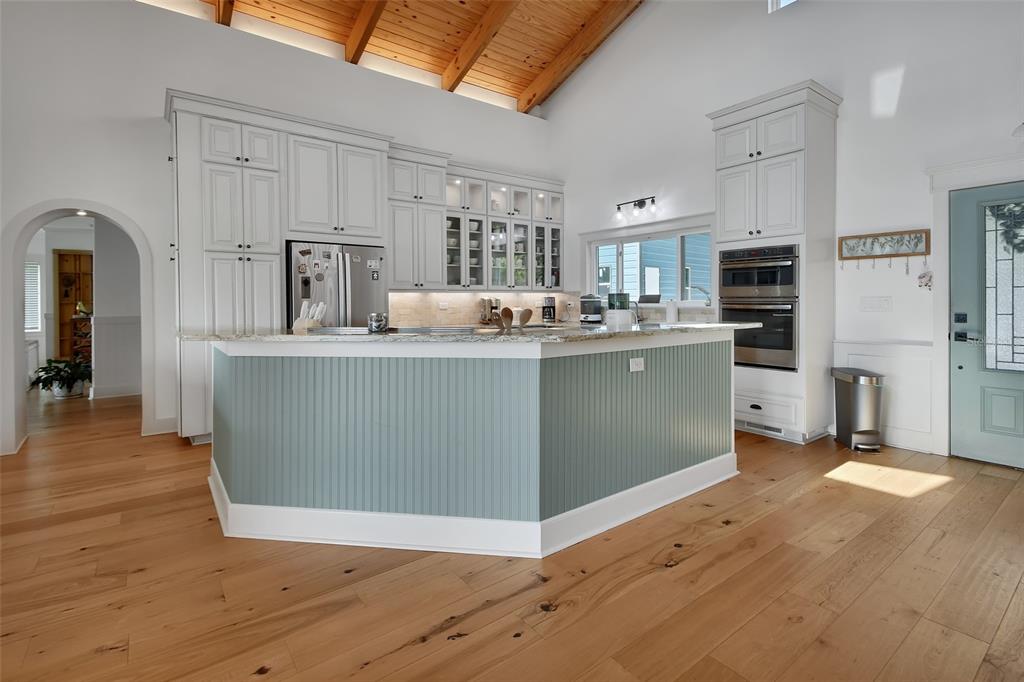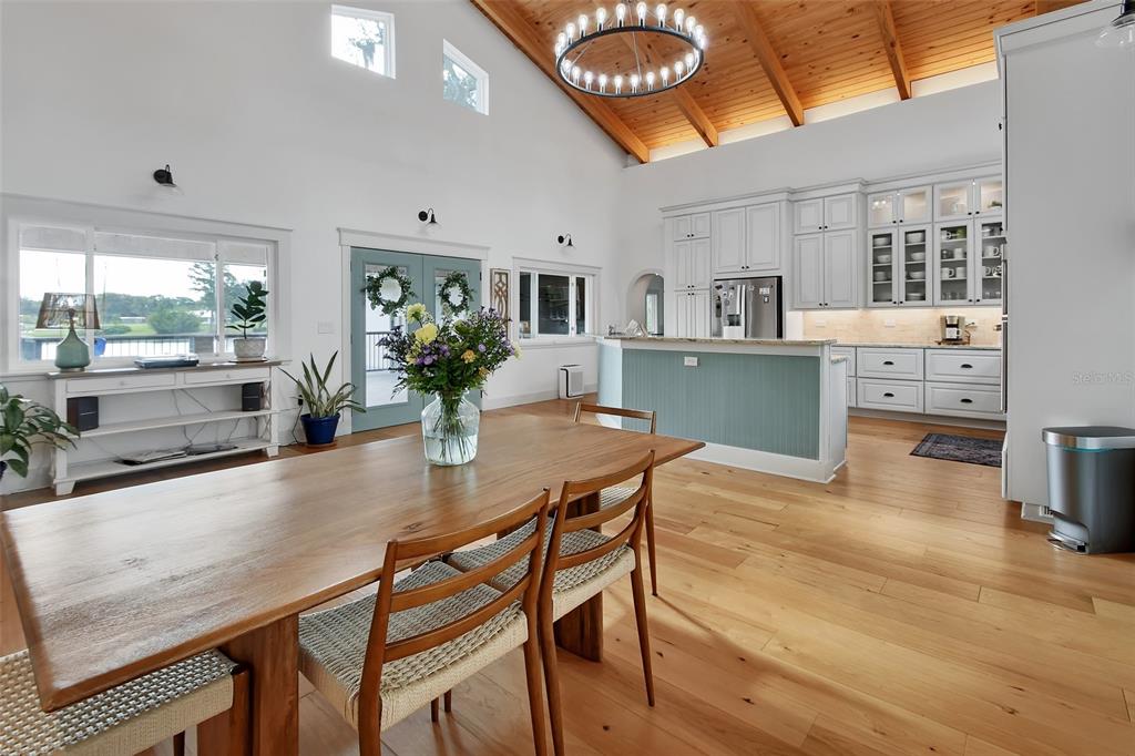 Private and serene, yet just minutes from downtown DeLand, Stetson University, and an easy drive to the beach, the location strikes the perfect balance. Step inside to panoramic views of Lake Ruby and soaring natural wood ceilings that instantly warm the space. The open-concept kitchen is designed for both everyday living and entertaining, featuring high-end stainless appliances, a gas range, and generous space to gather.
