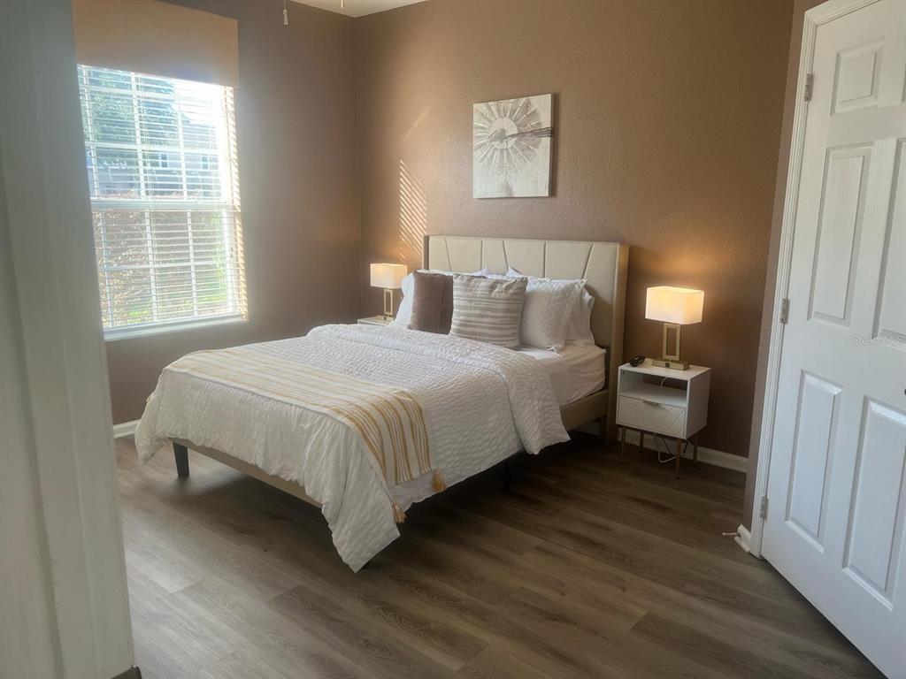Discover an excellent vacation rental investment in the highly desirable resort-style, guard-gated community of Windsor Palms. This 2-bedroom, 2-bath, First Floor condo is just minutes from Disney Theme Parks and Orlandoâs most popular attractions, making it a high-demand option for short-term rentals or personal use. Fully furnished and ready to move in. The building received fresh exterior paint in 2025. HOA fees cover water, trash, internet, and cable, so the owner only pays for electricity. Inside, this First Floor condo offers a bright, open layout with comfortable living and dining space, a fully equipped kitchen, an in-unit washer and dryer, and a screened lanai that is perfect for relaxing after a day at the parks. The primary suite includes a private ensuite bathroom, and the second bedroom and bathroom work well for family or guests. The condo also has new windows throughout, installed in 2025. Plank flooring throughout. Fully Furnished. No stairs, handicap accessible. Condo is close to parking area. Windsor Palms is a well-established vacation rental community with no usage restrictions. You can use the property as a primary home, second home, long-term rental, or short-term rental through platforms like Airbnb or VRBO. Owners are free to choose any property management company, which makes hands-off ownership very easy. Residents and visitors enjoy a full range of resort-style amenities, including a clubhouse, large community pool, fitness center, tennis courts, playground, basketball court, volleyball court, movie theater, and a convenience store. These features help keep rental demand strong. The location is close to Disney Theme Parks, Margaritaville Resort, shopping, dining fine and casual, and major roads such as US-192, I-4, and SR-429. Easy access from airport either via Freeway or Toll road. This condo offers an excellent mix of location, flexibility, and long-term investment value.