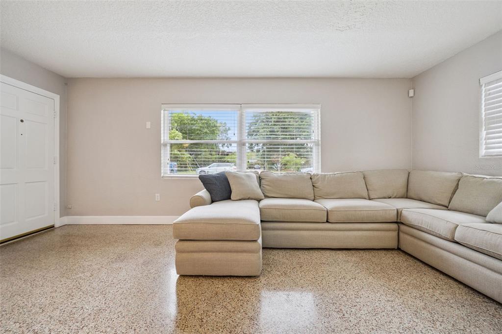 Large family room with backyard views