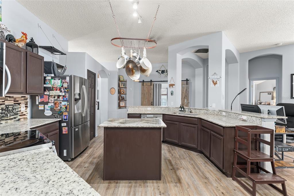The split-bedroom layout provides privacy for the massive primary suite, while a large sunroom brings in natural light and offers extra flexible living space. Step outside to your private backyard oasis with an oversized salt water lappool finished in elegant stoneworkâideal for relaxing or entertaining. Enjoy the fire pit on those chilly winter evenings, perfect for the family to get outdoors during the holiday season.