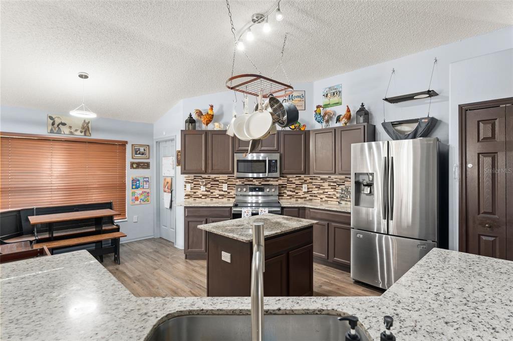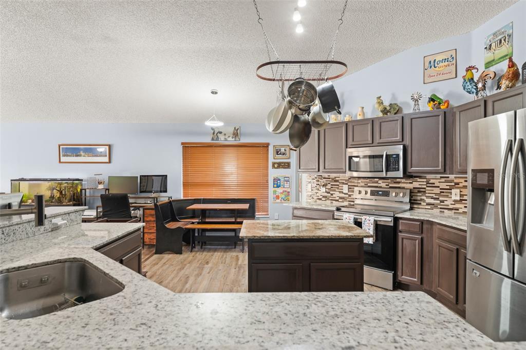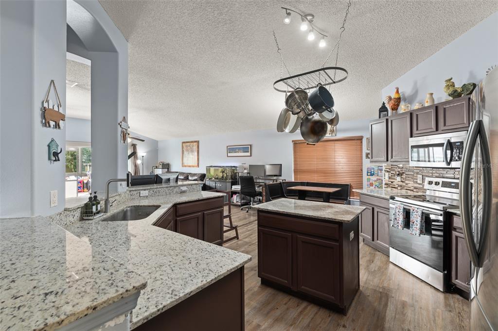 Back on the Market after Christmas break, and some refreshing updates! Welcome to this beautifully updated 4-bedroom, 2-bath SALT WATER POOL home in sought-after Sorrento! This open-concept floor plan offers seamless living with granite countertops and NEW luxury vinyl plank flooring flowing consistently throughout every room. The spacious kitchen features a bright eating area and overlooks the living and dining spacesâperfect for everyday living and entertaining.