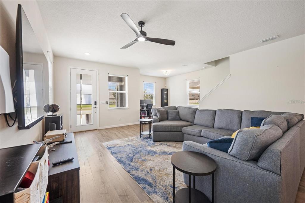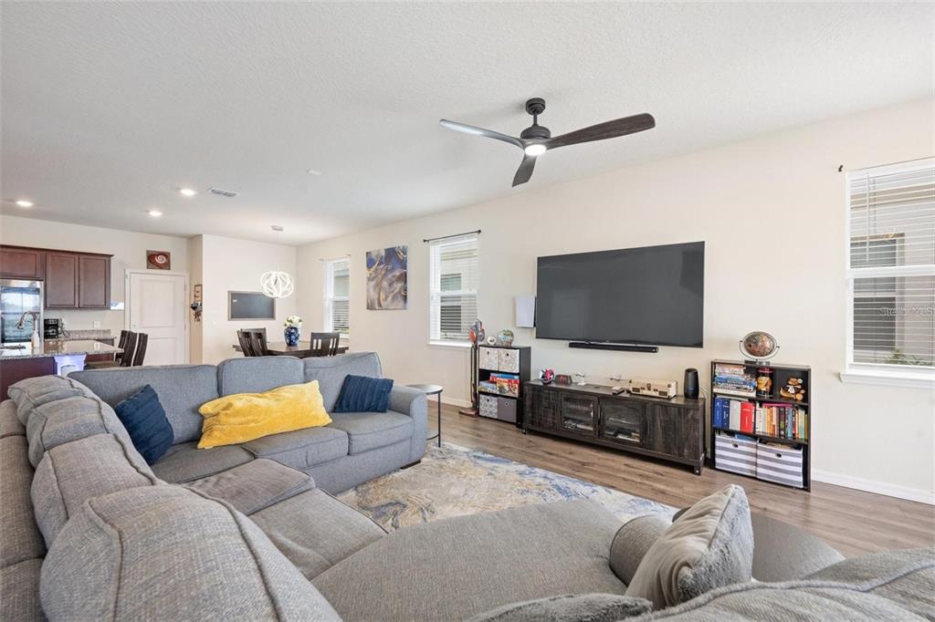 - Interior Features: Ceiling Fan(s), High Ceilings, In Wall Pest System, Kitchen/Family Room Combo, L Dining, Living Room/Dining Room Combo, Open Floorplan, Pest Guard System, PrimaryBedroom Upstairs, Smart Home, Solid Surface Counters, Solid Wood Cabinets, Split Bedroom, Thermostat