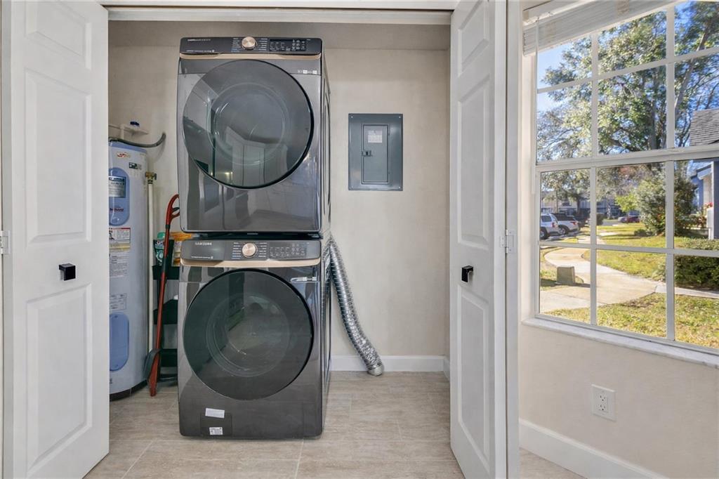 One or more photo(s) has been virtually staged. Welcome to this intimate, light-filled two-story townhome nestled in a nature-oriented Apopka community of Wekiva Reserve. Offering 3 bedrooms, 2.5 bathrooms, and approximately 1,400 square feet of thoughtfully designed living space, this home blends comfort, style, and functionality. The open-concept layout is filled with natural light and flows seamlessly from the living room to a private, fenced outdoor retreat through sliding glass doorsâperfect for relaxing or entertaining. The kitchen shines with custom wood cabinetry, quartz countertops, new Samsung smart appliances, and a central island ideal for morning coffee or evening gatherings. The spacious primary suite features a walk-in closet and a newly updated spa-like bathroom with double vanity and glass-enclosed shower, while two additional bedrooms offer flexibility for guests, family, or a home office. This home has been exceptionally maintained, having been used only as a vacation residence with minimal occupancy, resulting in noticeably low wear and excellent condition. Additional upgrades include newer concrete exterior siding, energy-efficient foam insulation, enhanced soundproofing, upgraded electrical, fresh interior and exterior paint, and a 2018 roof. A washer and dryer are included, and a dishwasher can be installed prior to closing. Enjoy a private fenced backyard with a new concrete patio, along with two assigned parking spaces and guest parking. Community amenities include a pool and tennis courts, all conveniently located near Wekiwa Springs, scenic trails, and nature preserves, with access to top-rated schools. Schedule your private tour today and experience a home that truly balances tranquility, quality, and modern living.