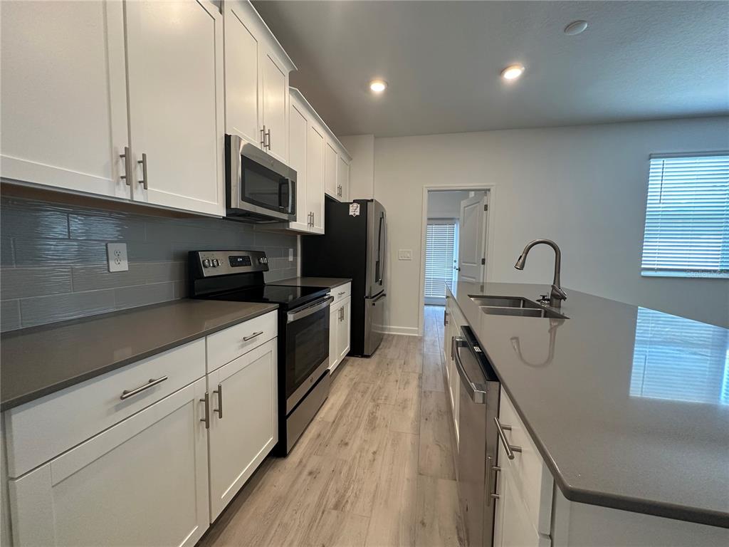 Looks like new! This beautifully maintained and gently lived-in home is located in the master-planned community of Bridgewalk, one of the newest communities in St. Cloud, just minutes from Lake Nona Medical City. The popular MONTARA floor plan by Lennar features 4 bedrooms, 2.5 bathrooms, a private courtyard, and a 2-car garage. The primary bedroom and laundry room are conveniently located on the main floor. This home offers an open-concept layout with a spacious kitchen featuring ample cabinetry, quartz countertops, stainless steel appliances, and tile flooring throughout the first floor. Washer and dryer are included for added convenience. Enjoy resort-style HOA amenities, including a swimming pool and spa, fitness center, volleyball and basketball courts, tot lot, private clubhouse, and a private boat ramp with dock and gazebo on Springhead Pond. The community also offers access to Lake Ajay with four boat slips and a public boat ramp.