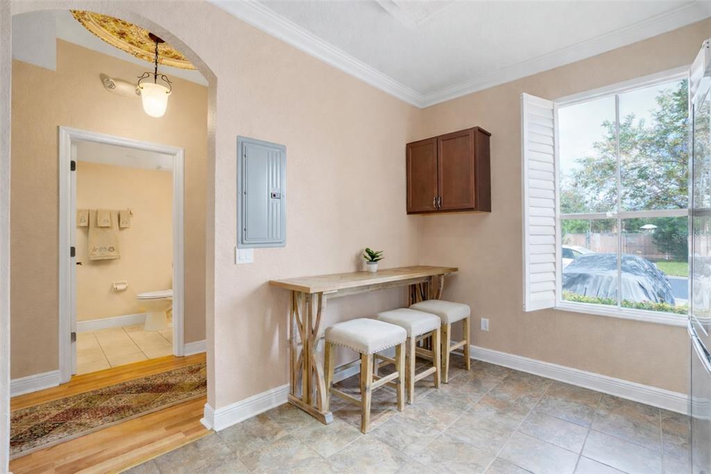 - Interior Features: Ceiling Fan(s), Crown Molding, Eating Space In Kitchen, Living Room/Dining Room Combo, Open Floorplan, PrimaryBedroom Upstairs, Solid Surface Counters, Solid Wood Cabinets, Thermostat, Walk-In Closet(s)