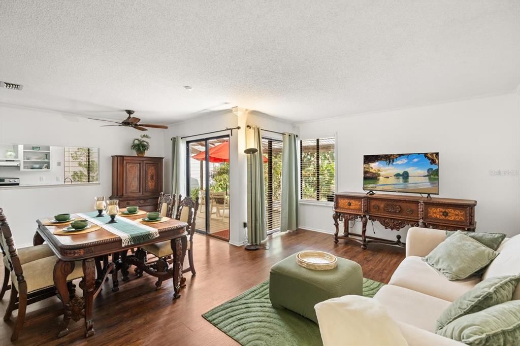 Warm and inviting home located in the highly sought-after Highland Village community of Winter Springsâwhere residents love to live and rarely want to leave. This 2-bedroom, 2-bath home features an open floor plan, abundant natural light, and no carpet throughout. The spacious living and dining areas open a comfortable layout, perfect for everyday living or entertaining. The primary bedroom is generously sized with a large walk-in closet, and the primary bathroom has been updated with a sink, faucet and mirror. The secondary bedroom is also well-sized and versatile. The guest bathroom has been updated with a new vanity and mirror. The kitchen offers ample storage, includes all appliances, and opens directly to the private backyardâcomplete with a covered patio and ceiling fan, ideal for relaxing outdoors. Seller has recently updated the following: replace all interior doors, all new faux window blinds for all windows and crown molding in living areas. All appliances will stay including the washer and dryer! Seller also has a survey for buyer. Enjoy living in a vibrant, well-maintained community with top-rated schools and fantastic amenities including a pool, tennis and pickleball courts, volleyball court, playground, and scenic walking trails and low HOA costs. Conveniently located near SR 434 and Tuskawilla Road, just minutes from Winter Springs Town Center, shopping, dining, and a short walk to Torcaso Park. Schedule your private showing today.