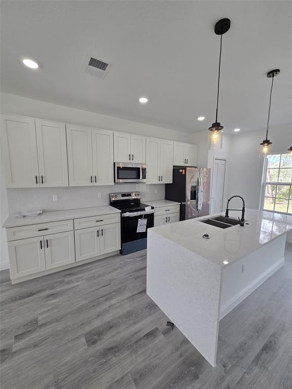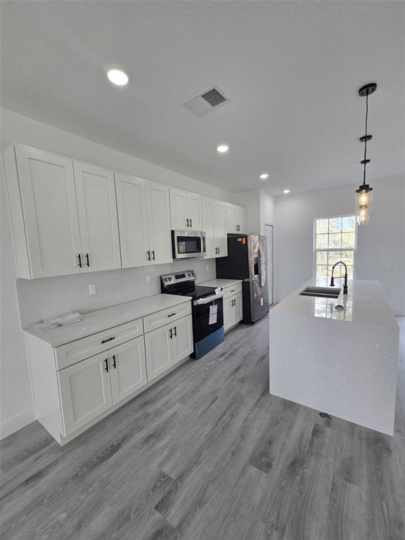 From the moment you step inside, you're greeted by soaring ceilings, abundant natural light, and designer finishes throughout. The heart of the home is a gourmet kitchen complete with quartz countertops, custom cabinetry, stainless steel appliances, and a large island that flows seamlessly into the living and dining areas—ideal for entertaining.