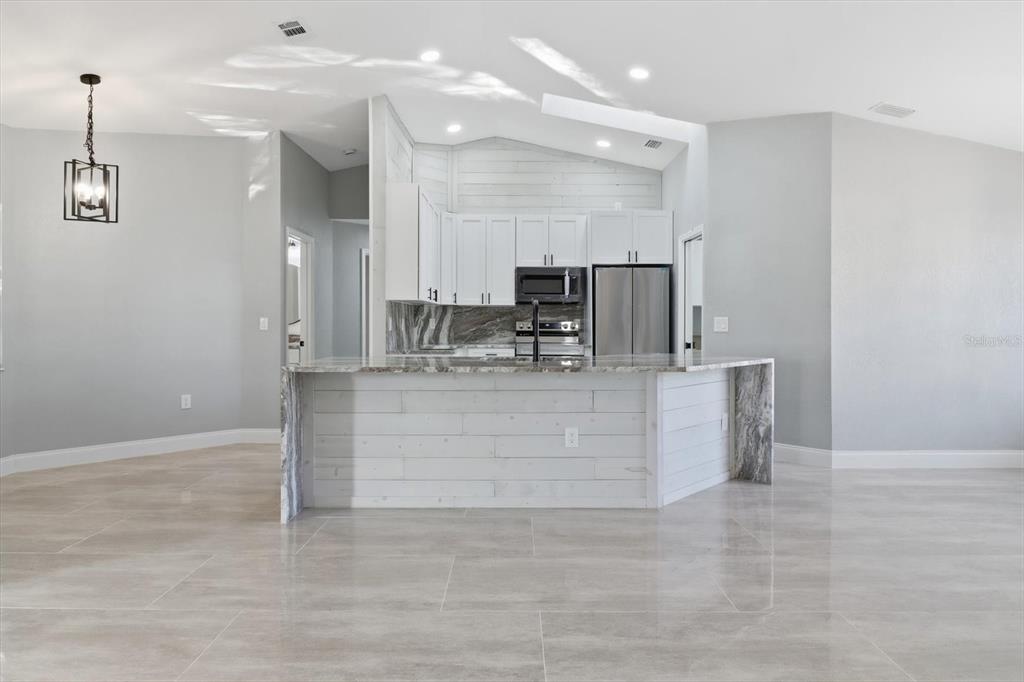 - Interior Features: Cathedral Ceiling(s), Ceiling Fan(s), Eating Space In Kitchen, High Ceilings, Kitchen/Family Room Combo, Open Floorplan, Primary Bedroom Main Floor, Stone Counters