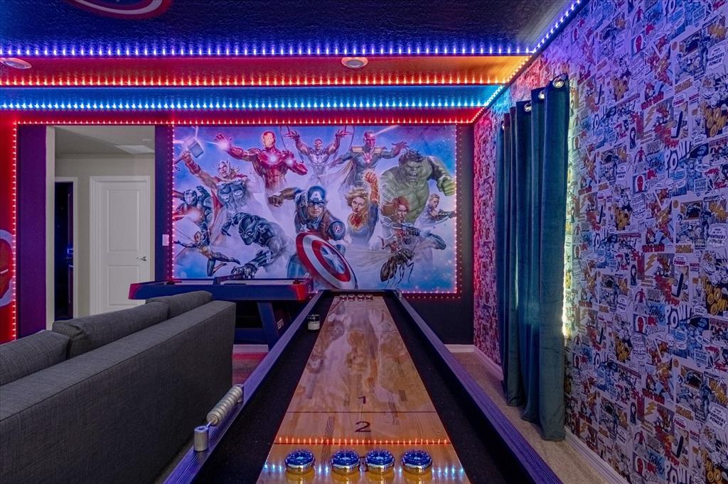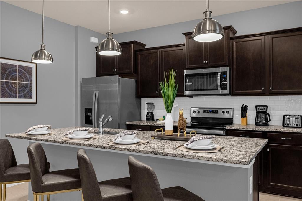 This professionally designed, fully furnished 7-bedroom, 5.5-bath vacation retreat offering over 3,200 square feet of upgraded living space in one of Central Floridaâs most sought-after resort communities. This turnkey property blends upscale finishes with functional design, ideal for investors and vacationers alike. Step inside to discover a spacious open-concept layout perfect for large groups. The gourmet kitchen features rich espresso cabinetry, granite countertops, stainless steel appliances, and a generous center island with seating that's ideal for casual dining and entertaining. The main-level primary suite offers direct pool access and a spa-inspired en suite bath with dual sinks, a garden tub, and walk-in shower. Upstairs, a sprawling loft has been transformed into a private game and movie room, surrounded by six additional bedrooms and four full baths, providing ample space for guests and family. Outside, enjoy your own private oasis with a heated pool and spa, covered lanai, and plenty of seating for sun-soaked relaxation or evening gatherings. Located in Windsor Island Resort, just minutes from Disney, this community is packed with world-class amenities: a zero-entry resort pool, lazy river, water slide, splash pad, clubhouse with concierge and arcade, fitness center, mini golf, playground, firepit with Disney fireworks views, and the Blue Marlin Grille restaurant. With short-term rentals allowed and high demand year-round, this property offers both lifestyle and income potential.