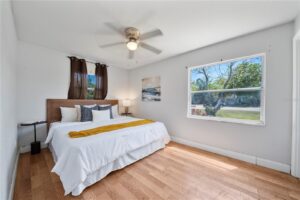 Discover this beautifully renovated home in the sought-after Lake Mann Estates, just a short stroll from the tranquil waters of Lake Mann. Nestled on a spacious corner lot, this inviting residence boasts a brand-new roof, a new A/C system, and a recently updated water heater (2019), ensuring low-maintenance living.