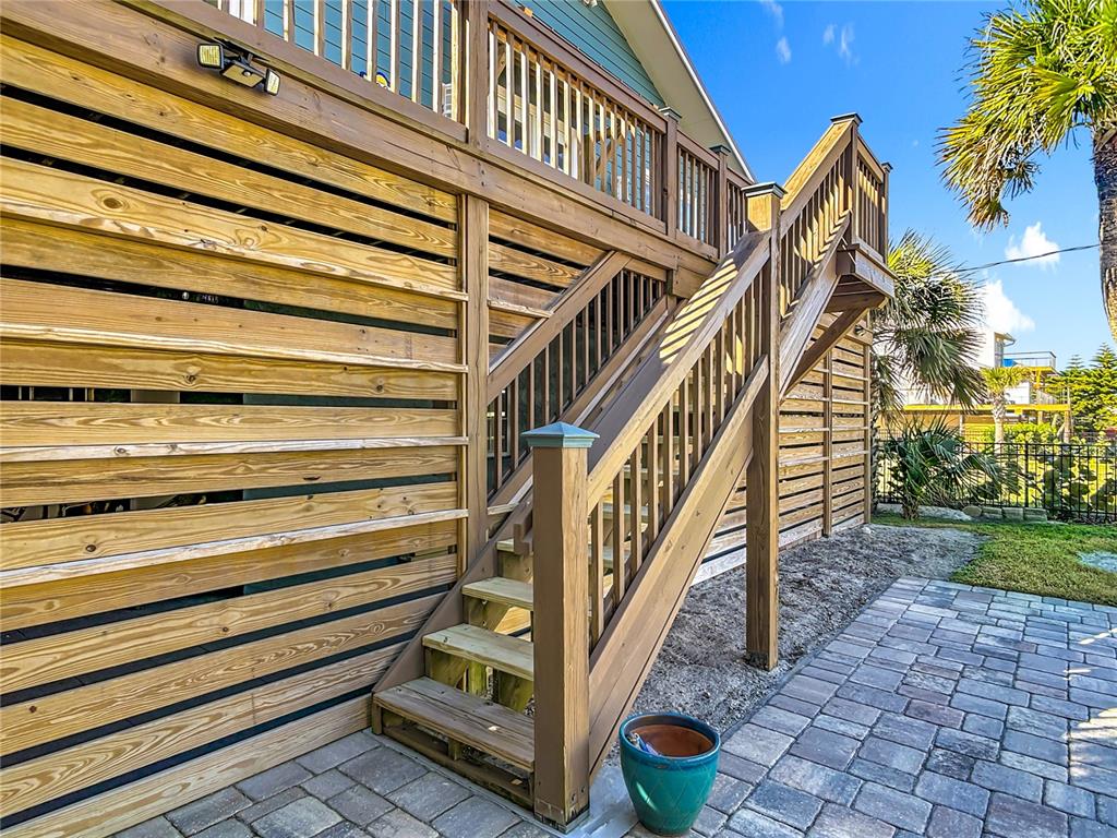 Tucked away just steps from the pristine, no-drive stretch of Bethune Beach, this exceptional captivating 5/3 coastal residence offers a rare blend of privacy, versatility, and timeless elegance. Set within one of New Smyrna Beachâs most coveted enclaves, this home presents a true beachside footprint with endless memories. Open and airy this coastal home is designed for elevated beach living and features a thoughtfully layered floor plan. Included is a 2/1 first floor separate entrance in-law apartment/ with a large living room and its own kitchen, great for extended family or rental. This floorplan seamlessly balances open-concept living with private retreats. The main living level showcases sunlit interiors, a welcoming living room with instant fireplace, dining area, and eat-in kitchen with a large island/snack bar, A balcony off the living space invites relaxed mornings and tranquil evenings overlooking the surrounding coastal landscape, perfectly positioned to capture ocean breezes and partial Atlantic views. The primary suite, perched on the upper level, is a serene sanctuary complete with its own instant fireplaceâan intimate space to unwind after days spent by the sea and a private balcony area. Expansive east- and west-facing decks provide both ocean and river views, offering spectacular sunrises and unforgettable sunsets. The ground-level private suite functions as a refined guest residence or mother-in-law apartment, complete with its own living area, kitchen, 2 bedrooms, and bathâideal for extended family, visiting guests, or rental income while maintaining owner privacy. This RARE double lot is 150 ft deep and can easily house a pool/recreational area! Simplicity meets elegance at this impeccable beach hideaway!