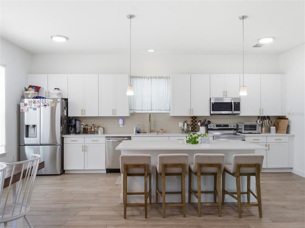 Step inside to a bright, open first floor with upgraded full tile flooring, 10 ft ceilings, and Low-E windows that enhance efficiency and natural light. The chef-inspired kitchen boasts a large island, upgraded single-basin sink with premium disposal, a statement faucet, designer cabinetry, granite countertops, decorative backsplash, and stainless-steel appliances including an LG 25.5 cu. ft. French door counter-depth smart refrigerator and Samsung range and microwave. A whole-house Springwell water filtration system provides clean water throughout the home. Outdoor living is a highlight with an extended cement deck perfect for entertaining, relaxing, and enjoying stunning golden-hour views over the water. The property also includes a French drain on the right side for improved drainage into the swale. Additional features include partial lake views from almost every room, energy-efficient R-38 insulation that helps lower utility costs, and a low HOA annually. The nearby power substation offers excellent storm reliability with minimal outages. This home offers exceptional convenience, located just 15 minutes from Downtown Orlando, 17 to 23 minutes from Orlando International Airport, and 11 to 13 minutes from Mills/50. It sits directly across from Baldwin Park and is only five minutes from the 408 and seven minutes from the 417. Theme parks are just 25 to 30 minutes away, and both a local hospital and fire station are within 15 minutes. A peaceful retreat with modern upgrades, thoughtful features, and a prime locationâthis home truly has it all.