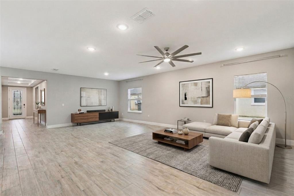 - Interior Features: Ceiling Fan(s), Eating Space In Kitchen, High Ceilings, Kitchen/Family Room Combo, Living Room/Dining Room Combo, Open Floorplan, Primary Bedroom Main Floor, Split Bedroom, Walk-In Closet(s)