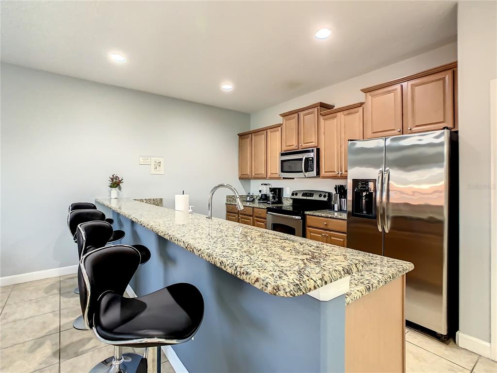 WOW!! 4/3 REMODELED townhouse on the exclusive Resort Style community "Paradise Palm Resort". Entirely furnished townhouse with Waterview and private pool. Modern design all over the place, living and dining room with brand new furniture, gourmet kitchen with granite countertop and breakfast bar, brand new luxury vinyl floor bedroom with 3 closet & 1 full bathroom. The elegant recently done stair will take you to a spacious second floor all new Luxury water resistant vinyl floors in hallway and bedrooms, the spectacular master bedroom with En-suite bathroom offers brand new furniture, drapes & energy efficient LED lighting fixtures, night lamps with usb-cell phone charger. The en-suite bathroom with double sink, shower-tub combination and private toilet room for a unique privacy. the hallway will lead you to bedrooms 2 where the magic of Disney comes alive, all furnished and Disney themed but keeping a modern touch. Bedroom 3 all furnished, and Marvel themed for the younger. a private and elegant hallway bathroom with dual sink and private toilet-shower room. The lanai offers a secluded pool area with outdoor furniture and grill with a stunning view to a pond. This home is perfect for vacation rental, vacation home or for all resort lifestyle lovers. Paradise palm resort has many amenities such as lagoon style pool with slides, 2 hot tubs, pool bar, kid's water splash, tennis court, basketball court, volleyball court, clubhouse, gym, sauna, convenient store and a wonderful movie theater with daily showings. Brand new A/C installed on 2023. This amazing home is located close to shopping plazas, restaurants, water park, major highways and 10 minutes away for the MAGICAL WORLD of Walt Disney World theme parks. you can' miss this opportunity to live on a resort style place. schedule your showing today.