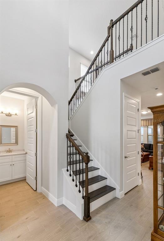 LUXURY POOL HOME on PREMIUM LAKE FRONT LOT! Unique Opportunity to Enjoy an Outdoor PARADISE with STUNNING LAKE, CONSERVATION & SUNSET Views! The HOA is Allowing Docks on these Special Lots â Relax, Fish or Kayak! Most POPULAR Floor Plan â North Haven â has 5 Bedrooms, 3.5 Baths, Gourmet Kitchen, First Floor Primary Suite, TONS OF STORAGE, Tile Roof and 3 Car Garage. The OUTDOOR LIVING Space is SPECTACULAR - $200,000 to Duplicate! Generous COVERED Patio PLUS additional Covered CABANA SPACE is 34 FEET LONG! DELUXE Heated POOL and SPA with Upgraded Pavers, PANORAMIC SCREEN, Large SUN SHELF with Bubblers, PEBBLETEC Surface, Mosaic Accent Tile, SALT SYSTEM, LED Lights and FULLY AUTOMATED SYSTEM for Chemicals! PLUS Ledge Loungers and Basketball Hoop are Included! This MODEL PERFECT Home has a GOURMET KITCHEN with 42â Cabinets, Large Island with QUARTZ COUNTERS, Upgraded Subway Tile Backsplash, NEW PENDANT LIGHTS, Large SINGLE SINK, SS APPLIANCES including BUILT-IN OVEN and COOK TOP with VENT HOOD and FRENCH DOOR Refrigerator. ! Large Pantry and Butler Pantry add Storage! OPEN FLOOR PLAN with Views of the Patio, Pool and LAKE from Family Room and Casual Dining! First Floor Primary Suite with CUSTOM CLOSET has a Bath that Features DOUBLE Vanities, OVERSIZED SHOWER and Garden Tub. FLEX Space can be Dining Room, Office or Living Room. Convenient Powder Bath and FULLY Remodeled Laundry Room with Cabinetry, Utility Sink and RO Water System Complete the First Floor. Entire First Floor has WOOD PLANK Porcelain Tile, 8â Doors and 5 ¼ Molding. Stairs are Engineered Wood with Wrought Iron Spindles. The HUGE LOFT separates the Upstairs. ALL 4 Bedrooms have WALK IN Closets â but Bedroom 3 has a CUSTOM CLOSET. Bedrooms 2 and 3 share Full Bath 2 and Bedrooms 4 and 5 Share a Jack-and-Jill Bathroom. These Owners Thought of Everything! Paver Path to Store Trash Bins, Gutters with LEAF GUARD, Salt Free Water Filtration System, Custom Valances, Interior Painted with QUALITY paint, AC with Ultraviolet Sanitizing, Upgraded PRIVACY Landscaping, Garage with EPOXY FLOOR, Overhead Storage Racks and CUSTOM Storage System! Waterleigh is the PREMIER LIFESTYLE COMMUNITY with 4 Resort Style Pools, 3 Clubhouses with Fitness Centers, Walking Trails, Sand Volleyball, Dog Park, Fishing and Observation Pier, Tennis, Pickleball, Playgrounds and more! HOA Does all Yard Maintenance. All this zoned for NEW Atwater Bay Elementary, Water Spring Middle School and Horizon High School! Close to Disney, Shopping, Dining, 429, I-4, 417 and a NEW PUBLIX!